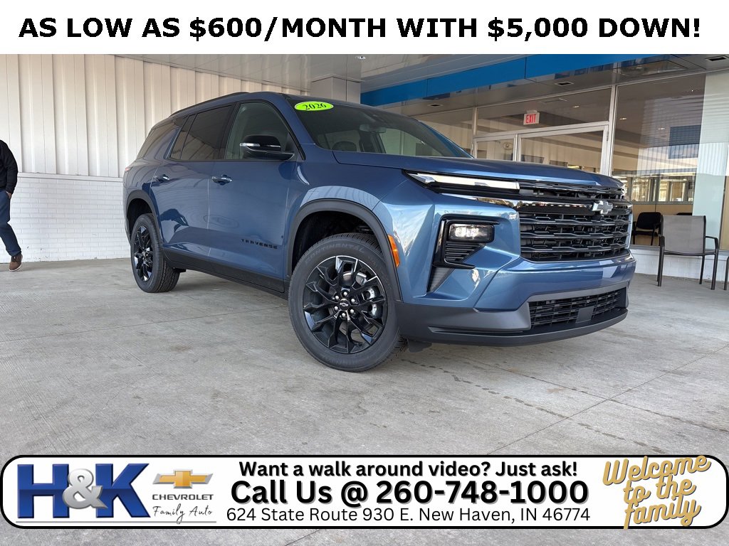 H&K Chevrolet has been family owned and operated for over 70 years. With our recently acquired New Haven location, we started our business in a town of 4,000 people, and carry forward over 70 plus years of success from our Continental location. We prioritize customer service, honesty, and up-front pricing to provide the easiest buying experience possible. At H&K Chevrolet, we are committed to building lasting relationships with our customers that extend beyond sales and service. Disclaimer: Payment shown above is based on financing for 84 months at 6.9% APR or applicable GM Financial promotional rate, whichever applies. Payment calculations assume qualification for GM Employee Pricing. All offers are subject to credit approval and may vary depending on individual credit history. Not all customers will qualify. Lakeshore Blue Metallic 2026 Chevrolet Traverse LT 1LT FWD 8-Speed Automatic 2.5L DOHC Lakeshore Blue Metallic.