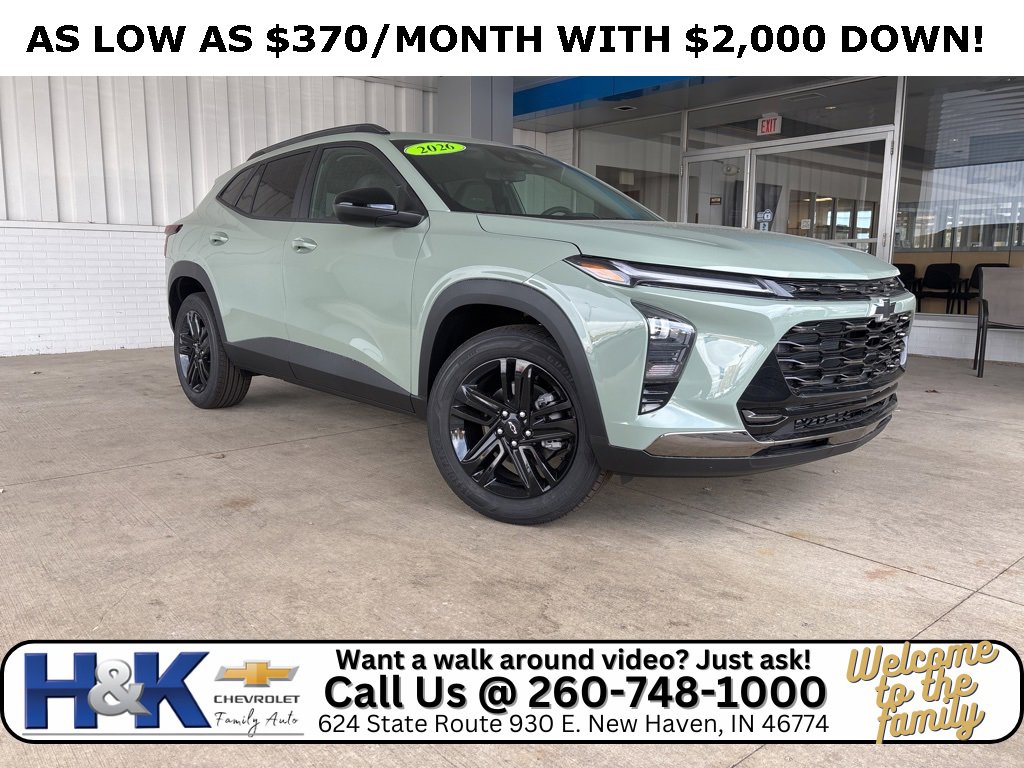 H&K Chevrolet has been family owned and operated for over 70 years. With our recently acquired New Haven location, we started our business in a town of 4,000 people, and carry forward over 70 plus years of success from our Continental location. We prioritize customer service, honesty, and up-front pricing to provide the easiest buying experience possible. At H&K Chevrolet, we are committed to building lasting relationships with our customers that extend beyond sales and service. Disclaimer: Payment shown above is based on financing for 84 months at 6.9% APR or applicable GM Financial promotional rate, whichever applies. Payment calculations assume qualification for GM Employee Pricing. All offers are subject to credit approval and may vary depending on individual credit history. Not all customers will qualify. Cacti Green 2026 Chevrolet Trax ACTIV FWD 6-Speed Automatic ECOTEC 1.2L Turbo Cacti Green.