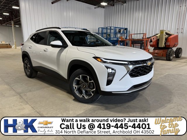 H&K Chevrolet of Archbold has been family owned and operated for over 70 years. Quietly located in NW Ohio, in a town of 4000 people. Customer service and honesty, are top priorities at Christy. We price our vehicles honestly, and straight forward to give you the easiest buying experience possible. Disclaimer: Payment shown above is based on financing for 84 months at 6.9% APR or applicable GM Financial promotional rate, whichever applies. Payment calculations assume qualification for GM Employee Pricing. All offers are subject to credit approval and may vary depending on individual credit history. Not all customers will qualify. New Price! Summit White 2026 Chevrolet Trax LT FWD 6-Speed Automatic ECOTEC 1.2L Turbo Trax LT, 4D Sport Utility, ECOTEC 1.2L Turbo, FWD, Summit White, Jet Black With Blue Accents Cloth, Adaptive Cruise Control, Driver Confidence Package, Front Doors Keyless Open, Heated Driver and Front Passenger Seats, Heated Power-Adjustable Outside Mirrors, Heated Steering Wheel, Lane Change Alert with Side Blind Zone Alert, LT Convenience Package, Rear Cross Traffic Alert, Rear Park Assist, Wrapped Steering Wheel.