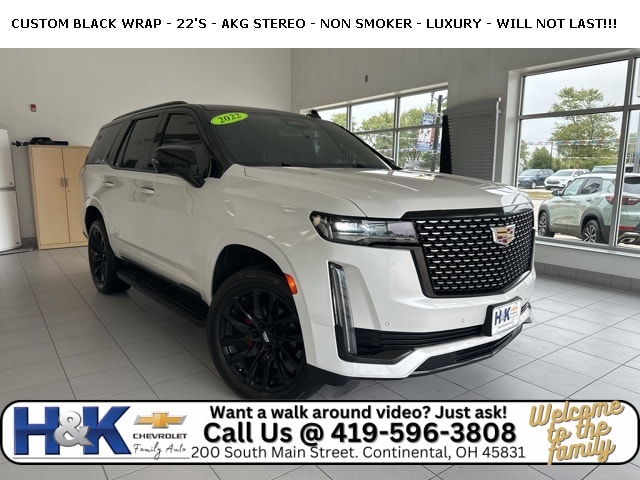 H&K has been family owned and operated for over 60 years. Quietly located in NW Ohio, in a town of 900 people. Customer service and honesty, are top priorities at H&K. We price our vehicles honestly, and straight forward to give you the easiest buying experience possible. Priced below KBB Fair Purchase Price! *** No Hassle Pricing ***, *** Fully Serviced, Cleaned, and Guaranteed***, *** Clean History Report ***, *** Accident Free Guaranteed ***, CLEAN CARFAX, *** 4X4/4WD ***, *** NAVIGATION ***, *** 22" ALLOY WHEELS ***, *** POWER LIFTGATE ***, *** BACKUP CAMERA ***, Escalade Luxury, 6.2L V8, 10-Speed Automatic, Crystal White Tricoat, Navigation System. Odometer is 3453 miles below market average!