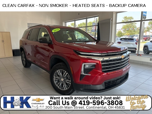 H&K has been family owned and operated for over 60 years. Quietly located in NW Ohio, in a town of 900 people. Customer service and honesty, are top priorities at H&K. We price our vehicles honestly, and straight forward to give you the easiest buying experience possible. *** No Hassle Pricing ***, *** Fully Serviced, Cleaned, and Guaranteed***, *** Clean History Report ***, CLEAN CARFAX, *** REMOTE START ***, *** POWER LIFTGATE ***, *** BACKUP CAMERA ***, Traverse LT 1LT, 4D Sport Utility, FWD, Jet Black Cloth.