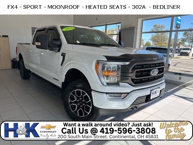 H&K has been family owned and operated for over 60 years. Quietly located in NW Ohio, in a town of 900 people. Customer service and honesty, are top priorities at H&K. We price our vehicles honestly, and straight forward to give you the easiest buying experience possible. *** No Hassle Pricing ***, *** Clean History Report ***, *** Accident Free Guaranteed ***, *** SUNROOF/MOON ROOF ***, CLEAN CARFAX, *** 4X4/4WD ***, *** REMOTE START ***, *** TRAILER BRAKE ***, *** BACKUP CAMERA ***, 4D SuperCrew, 3.5L PowerBoost Full-Hybrid V6, 10-Speed Automatic, 4WD, Oxford White, 10-Way Power Driver & Passenger Seats, 4x4 FX4 Off-Road Bodyside Decal, 8" Productivity Screen in Instrument Cluster, Accent-Color Step Bars, Auto-Dimming Rear-View Mirror, Black 2-Bar Style Grille w/Black Surround/Accents, Body-Color Door & Tailgate Handles, Body-Color Front & Rear Bumpers, Box Side Decals, Class IV Trailer Hitch Receiver, Dual Zone Electronic Automatic Temperature Control, Equipment Group 302A High, FX4 Off-Road Package, Heated Front Seats, Hill Descent Control, Integrated Trailer Brake Controller, Intelligent Access w/Push Button Start, LED Reflector Headlamps, LED Sideview Mirror Spotlights, Monotube Rear Shocks, Off-Road Tuned Front Shock Absorbers, Onboard 400W Outlet, Power Glass Heated Sideview Mirrors, Pro Trailer Backup Assist & Pro Trailer Hitch Assist, Radio: AM/FM SiriusXM w/360L, Rear Under-Seat Storage, Remote Start System w/Remote Tailgate Release, Rock Crawl Mode, SecuriCode Drivers Side Keyless-Entry Keypad, SYNC 4 w/Enhanced Voice Recognition, Trailer Tow Package, Unique Sport Cloth 40/Console/40 Front-Seats, Wheels: 18" 6-Spoke Machined Aluminum, Wrapped Steering Wheel, XLT Sport Appearance Package, Zone Lighting. Odometer is 14900 miles below market average!