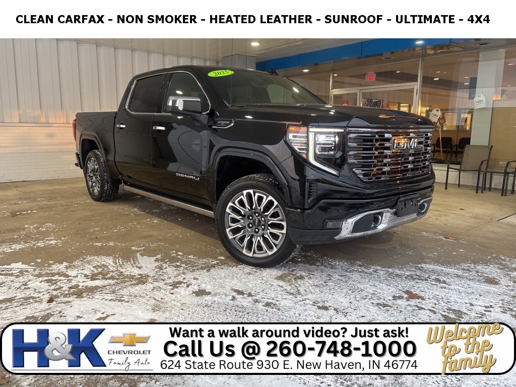 CLEAN CARFAX!, DENALI ULTIMATE!, TRI-FOLDING HARD TONNEAU COVER!, HD SURROUND VISION!, POWER SUNROOF!, GMC PRO SAFETY PACKAGE!, Sierra 1500 Denali Ultimate, 4D Crew Cab, 10-Speed Automatic, 4WD, Alpine Umber Leather, 120-Volt Bed Mounted Power Outlet, 120-Volt Interior Power Outlet, 2 Charge/Data USB Ports Inside Center Console, 2 Type-C Charge-Only Rear USB Ports, 2 USB Ports, Auto-Locking Rear Differential, Bed View Camera, Bose Premium Series w/12-Speaker System, Chrome Recovery Hooks, Color-Keyed Carpeting Floor Covering, Deep-Tinted Glass, Electric Rear-Window Defogger, Floor-Mounted Center Console, Front Rain-Sensing Wipers, HD Surround Vision, Heated 2nd Row Outboard Seats, Heated Driver & Front Outboard Passenger Seating, Heavy-Duty Air Filter, High Gloss Black Header w/Signature Denali Grille, Hill Descent Control, Hitch Guidance, Hitch View, In-Vehicle Trailering System App, Integrated Trailer Brake Controller, Keyless Open & Start, LED Cargo Area Lighting, Multicolor 15 Diagonal Head-Up Display, MultiPro Tailgate Audio System by Kicker (LPO), Navigation System, OnStar Services Capable, Perimeter Lighting, Power Door Locks, Power Front Passenger Windows w/Express Up/Down, Power Front Windows w/Driver Express Up/Down, Power Rake & Telescoping Steering Column, Power Rear Windows w/Express Down, Power Sliding Rear Window w/Rear Defogger, Power Sunroof, Preferred Equipment Group 5SB, Push Button Start, Rear Cross Traffic Braking, Rear Pedestrian Detection, Rear Wheelhouse Liners, Remote Vehicle Starter System, SiriusXM w/360L Trial Subscription, Spray-On Pickup Bedliner w/GMC Logo, Steering Wheel Audio Controls, Theft Deterrent System (Unauthorized Entry), Trailer Camera Provisions, Trailer Side Blind Zone Alert, Trailer Tire Pressure Monitor System, Trailering Package, Ultrasonic Front & Rear Park Assist, Universal Home Remote, Ventilated Driver & Front Passenger Seats, Wi-Fi Hotspot Capable, Wireless Charging. Recent Arrival! GMC Sierra 1500 Denali Ultimate 4WD 10-Speed Automatic EcoTec3 6.2L V8